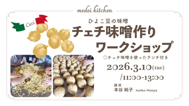 | 内容 | 〇チェチ味噌作り 〇チェチ味噌のランチ付き 〇チェチ味噌2kgお持ち帰り |